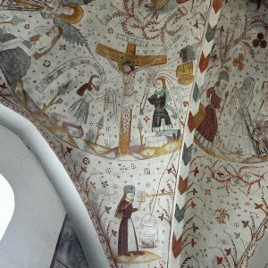Yet, as my family has learned (much to their chagrin), it is possible to find art and history nearly everywhere we go. The world for an art historian is a never-ending discovery of things to see and experience, a scavenger hunt of the remarkable. What we did not foresee when looking for an escape was that sylvan Møn was filled with incredible sights. We soon learned that we were surrounded by prehistoric dolmens and small Gothic churches which dotted the landscape. Upon entering the nearest church in Keldby, we encountered a vaulted ceiling that was filled with colorful and ornate Gothic frescoes. As I stood spellbound, my family knew that we were in trouble (Figure 1).